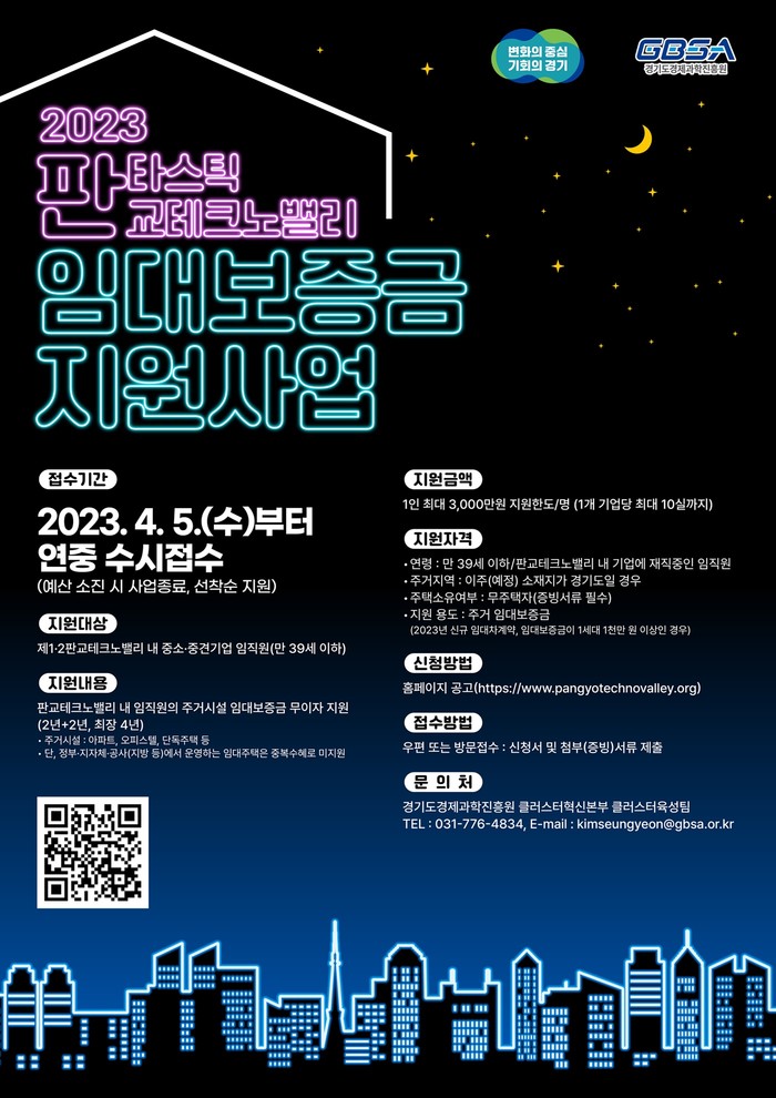 | ▲ 2023년 판교테크노밸리 임대보증금 지원사업 안내 포스터(사진=경기도) |