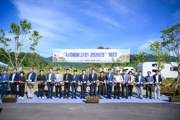 남해군은 지난 28일 오후 남해에코촌 캠핑장 개장식을 개최했다. 이 자리에는 장충남 남해군수를 비롯해 임태식 군의회 의장 및 군의원, 류경완 도의원, 그리고 이동면 기관단체장과 지역주민 등 50여 명이 참석했다.