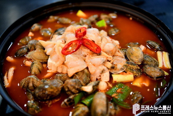 투박한 맛의 고추장찌개를 향토 음식에 맞게 개발한 것으로, 칼칼하면서 살짝 단맛이 있는 고추장찌개에 바지락의 시원한 맛이 일품이다. 주재료인 바지락은 단백질, 비타민 B군, 타우린이 풍부해 건강에도 좋고 맛도 좋아 시민뿐만 아니라 관광객의 입맛까지 사로잡고 있다. 바지락 살이 익으면 탄력 있는 바지락의 식감과 특유의 단맛을 느낄 수 있고, 끓이면서 시원한 맛과 감칠맛이 나와 밥과도 잘 어울린다. 졸여진 국물에 밥까지 비벼 먹으면 한 끼 식사로 제격이다.