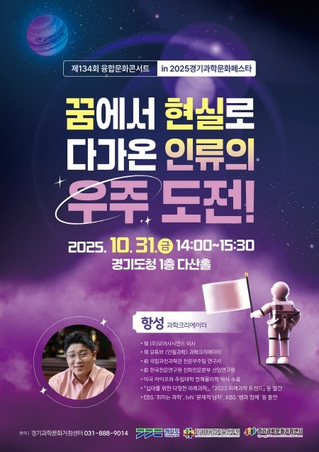 | ▲제134회 융합문화콘서트 ‘꿈에서 현실로 다가온 인류의 우주 도전’ (유튜버 항성) 포스터(사진=경기도) |