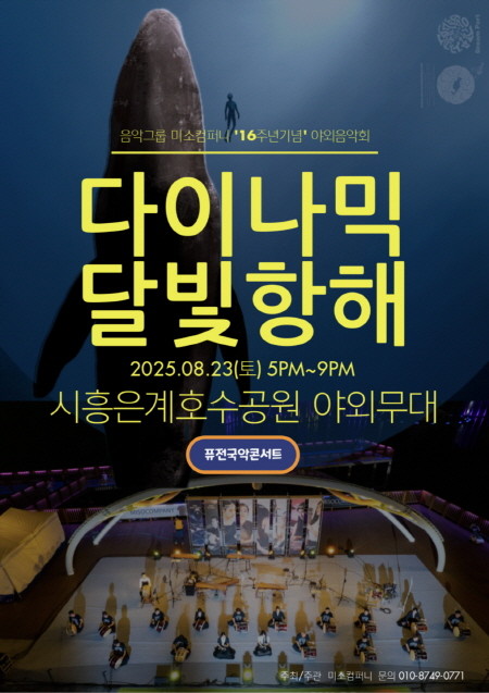 [프레스뉴스] 장현준 기자= 시흥시 문화예술을 이끌어 온 음악그룹 ‘미소컴퍼니’가 창단 16주년을 맞아 오는 8월 23일 오후 5시부터 9시까지 시흥시 은계호수공원 야외무대에서 음악회 ‘다이내믹 달빛항해_MOONLIGHT VOYAGE’를 선보인다.
