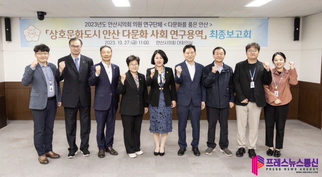 [프레스뉴스] 김대일 기자= 안산시의회 의원 연구단체 ‘다문화를 품은 안산’(대표의원 황은화)이 지난 27일 ‘상호문화도시 안산 다문화 사회 연구용역’의 최종보고회를 개최하고 연구용역 결과를 공개했다.