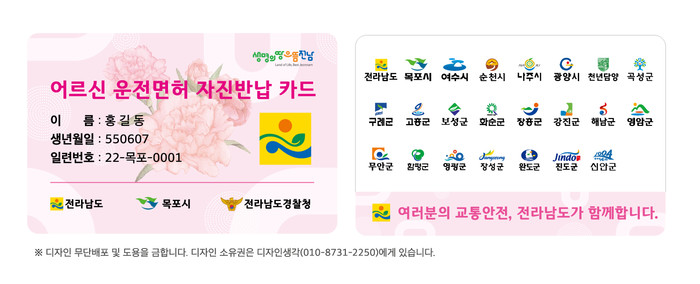 | ▲운전면허 자진반납 카드(목포시 디자인)/전라남도 제공 |