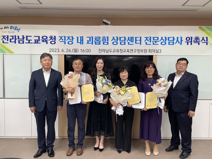 전라남도교육청은 26일(월) 전라남도교육청교육연구정보원에서 직장 내 괴롭힘 및 갑질 피해자 보호와 치료를 위해 전문심리상담사 4명을 위촉했다.
