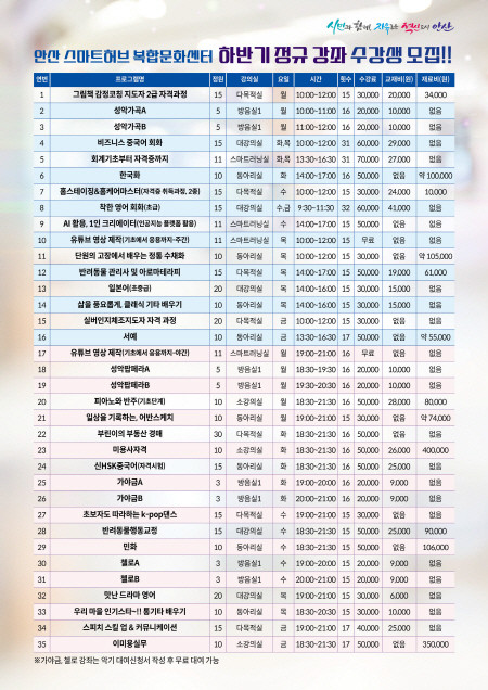 | ▲안산 스마트허브 복합문화센터, 하반기 정규과정 수강생 모집 포스터(사진=안산시) |