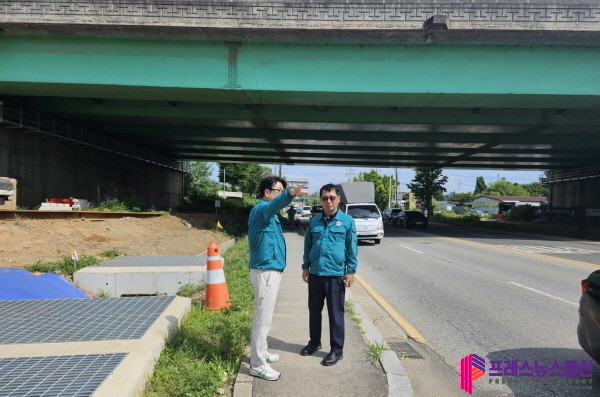 [프레스뉴스] 장현준 기자= 연제찬 시흥시 부시장은 지난 25일 집중호우 및 폭염 등 올해 여름철 자연 재난에 대한 현장 대응 태세를 확인하기 위해 침수 우려 도로 및 폭염 저감 시설을 찾아 현장점검에 총력을 기울였다.