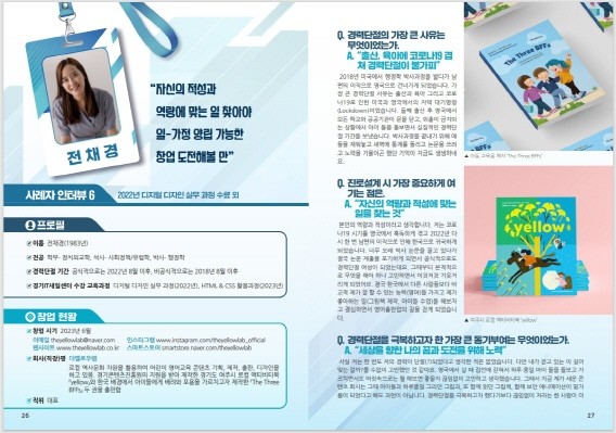 책자에는 경기도일자리재단 경기IT새일센터의 정보기술(IT)분야 직업교육훈련을 수료하고 디자인, 마케팅, 개발 분야로 취·창업에 성공한 13명의 인터뷰를 담았다. 사례자별로 경력단절 경험과 극복과정, 교육 참여 소감, 취·창업 준비와 성공과정, 향후 경력개발 계획 등을 소개했다.