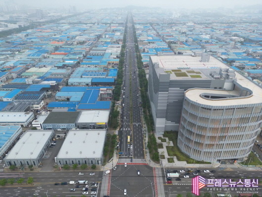 ▲시화국가산업단지 재생사업의 일환으로 추진 중인 공단2대로(정왕동 2120) 기반시설 정비공사가 마무리됐다.(사진=시흥시) |
