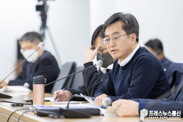 | ▲ 지난 15일 오후 경기도청 4층 다목적회의실에서 열린 기회경기 혁신포럼 ‘경바시(경기도를 바꾸는 시간)’에서 김동연 경기도지사가 인사말을 하고 있다.(사진=경기도) |