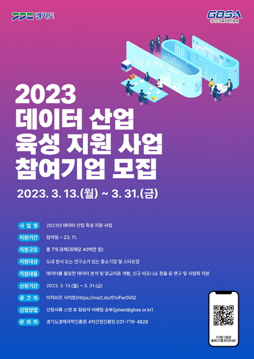| ▲ 2023년 데이터 산업 육성 지원 사업 참여기업 모집 포스터(사진=경기도) |