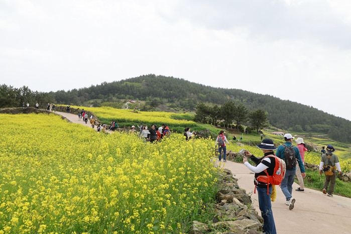 | ▲ 유채꽃이 활짝 핀 ‘2023 청산도 슬로걷기 축제’ 모습(4월 15일 촬영)사진제공=완도군 |