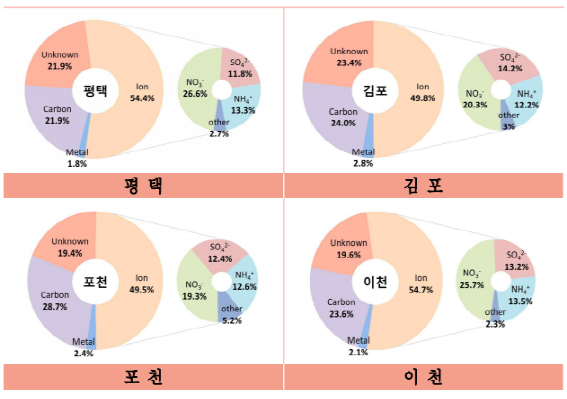 | ▲ PM-2.5 주요 성분 비율(평택, 김포, 포천, 이천)그래픽(사진=경기도) |