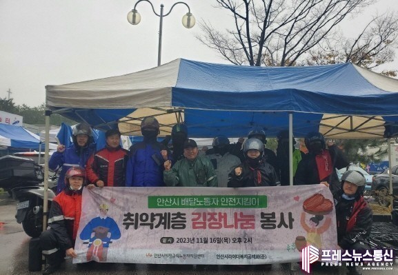 [프레스뉴스] 장현준 기자= 안산시(시장 이민근)는 배달노동자 안전지킴이들이 지난 16일 행복나눔터에서 관내 취약계층을 대상으로 김장 나눔 봉사를 진행했다고 21일 밝혔다.