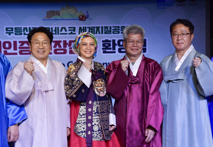 세계지질공원 재인증 현장실사단 환영식에서 업무협약 체결