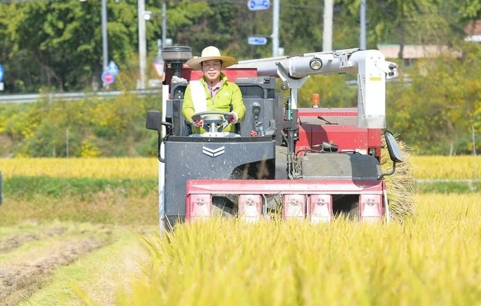 최민호 시장은 농가 일손부족 등 애로사항을 청취한 후 콤바인에 탑승해 직접 벼를 수확하며 풍년의 기쁨을 나눴다.