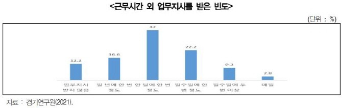 | ▲ 근무시간 외 업무지시를 받은 빈도 그래픽(사진=경기연구원) |