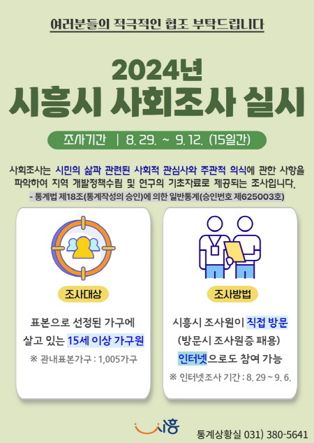 | ▲2024년 제10회 시흥시 사회조사 실시 안내 포스터(사진=시흥시) |