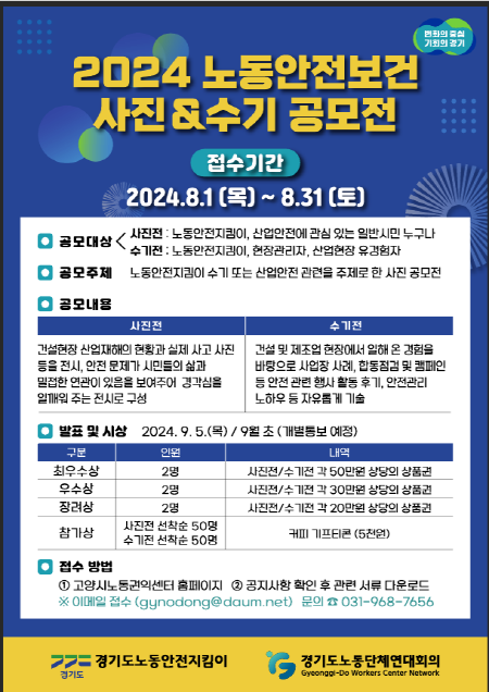 ▲2024 노동안전보건 사진·수기 공모전 포스터(사진=경기도북부청) |