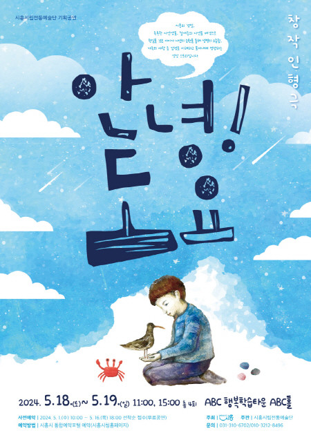 시흥시립전통예술단의 창작인형극 ‘안녕! 도요’는 시흥의 갯벌, 독특한 자연 생물, 철새 등을 배경으로 생성과 소멸, 자연의 순환을 겪으며 한 아이가 생명의 소중함, 가족의 사랑 등 감정을 이해하고 풀어나가는 성장 이야기를 담고 있다.