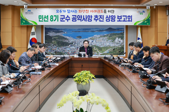 | ▲지난 2월 개최한 완도군, 민선 8기 군수 공약사항 추진 상황 보고회 (사진제공=완도군) |