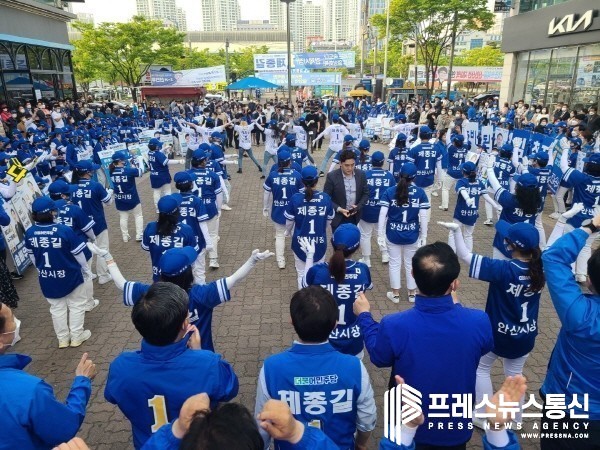 이날 출정식은 시작부터 풍물놀이와 집단군무로 분위기를 한껏 끌어올렸고 이 자리에 함께한 당원들과 시민 1천여명은 시종일관 제 후보를 연호하며 열렬한 지지와 응원를 보냈다.