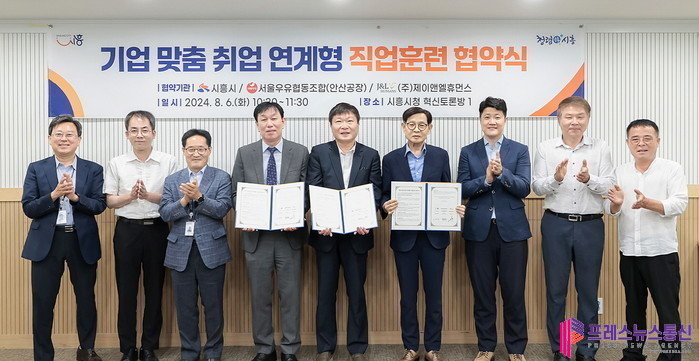 시청 혁신토론방에서 이뤄진 협약식에는 박승삼 시흥시 부시장을 비롯해 박광심 서울우유협동조합 안산 총괄공장장, 정용기 ㈜제이앤엘휴먼스 회장 등이 참석했다. 이번 협약은 시흥시가 제조 기반의 산업현장에서 다양한 직무 인재를 양성해 산업현장의 흐름에 맞춰 양질의 일자리를 창출하기 위해 마련됐다.