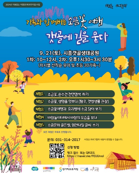 참가 신청은 온라인 큐아르(QR) 코드 스캔 또는 링크(https://naver.me/FEUUrvsI)로 하면 된다. 회당 각각 30가족을 선착순으로 모집한다. 자세한 사항은 시흥갯골사회적협동조합으로 문의하면 된다.