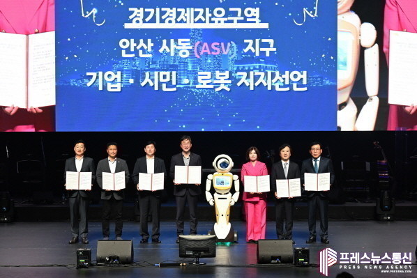 | ▲경제자유구역 지정을 위한 기업·시민·로봇 지지 선언(사진=안산시) |