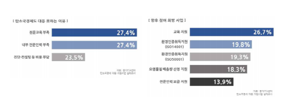 | ▲ 탄소국경제도 대응 못하는 이유, 향후 참여 희망 사업 그래픽(사진=경기도) |