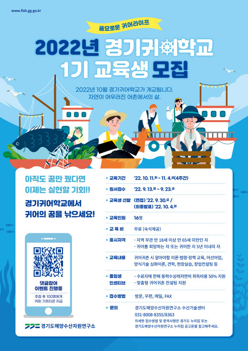 | ▲ 2022년 경기귀어학교 1기 교육생 모집 포스터(사진=경기도) |