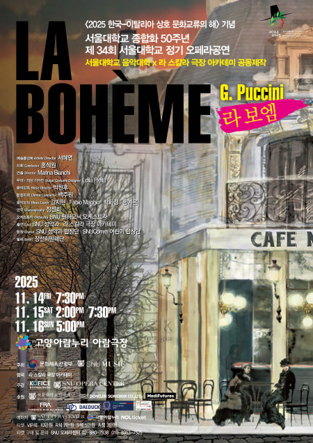[프레스뉴스] 장현준 기자= 시흥시(시장 임병택)와 서울대 교육협력사업인 ‘스누콤 합창단’이 ‘2025 한국-이탈리아 상호 문화교류의 해’를 기념해 서울대 음악대학과 라 스칼라 극장 아카데미가 공동으로 제작하는 오페라 ‘라 보엠(La Boheme)’에 특별출연한다.
