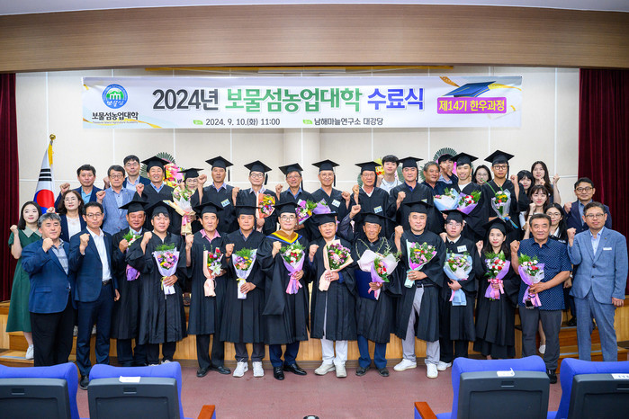 장충남 군수(보물섬농업대학장)는 “지난 5개월 동안 열의를 가지고 참여한 교육생들 모두에게 감사드린다. 수료식은 끝이 아닌 새로운 시작으로 수료생들은 이번 농업인대학에서 얻은 지식을 토대로, 남해군 축산의 지속 가능한 발전에 앞장서 활동해주길 부탁한다.”고 말했다.