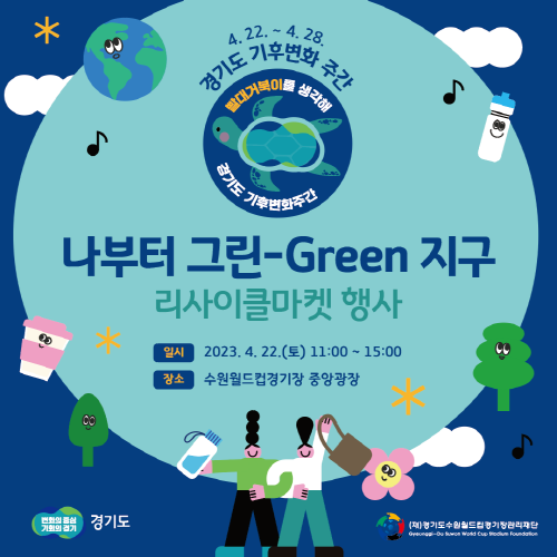 [프레스뉴스] 장현준 기자= 경기도와 (재)경기도수원월드컵경기장관리재단은 지구의 날(4월 22일)을 기념해 22일 오전 11시 경기도수원월드컵경기장 중앙광장에서 리사이클 마켓을 연다. 리사이클 마켓은 중고·벼룩 시장으로 집에서 쓰던 중고 물품을 교환하며 환경운동을 실천하는 행사다.