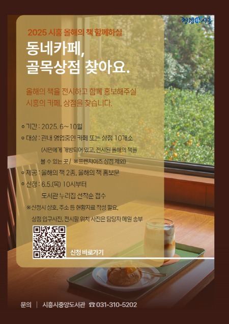 [프레스뉴스] 장현준 기자= 시흥시중앙도서관은 시민과 함께하는 독서문화 확산을 위해 ‘2025 올해의 책’ 골목상점 및 동네카페 연계사업을 본격 추진한다.