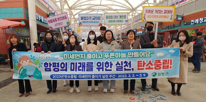 먼저, 지난 7일 함평천지전통시장에서 군민을 대상으로 미세먼지 저감과 탄소중립 생활 실천을 독려하는 피케팅 거리 캠페인을 실시했다.