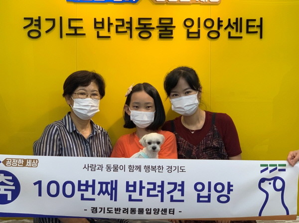 [프레스뉴스] 김대일 기자= 유기동물 입양문화 확산을 위해 지난해 10월 수원에 문을 연 ‘경기도 반려동물 입양센터’에서 100번째 입양견이 탄생했다.