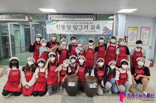[프레스뉴스] 장현준 기자= 안산시(시장 이민근) 학교급식지원센터는 지난달 26일부터 27일까지 이틀간 덕인초등학교에서 6학년 학생 96명을 대상으로 전통장 담그기 교육을 진행했다고 1일 밝혔다.