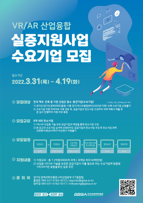| ▲ VR/AR 산업융합 실증지원사업 수요기업 모집 포스터(사진=경기도) |
