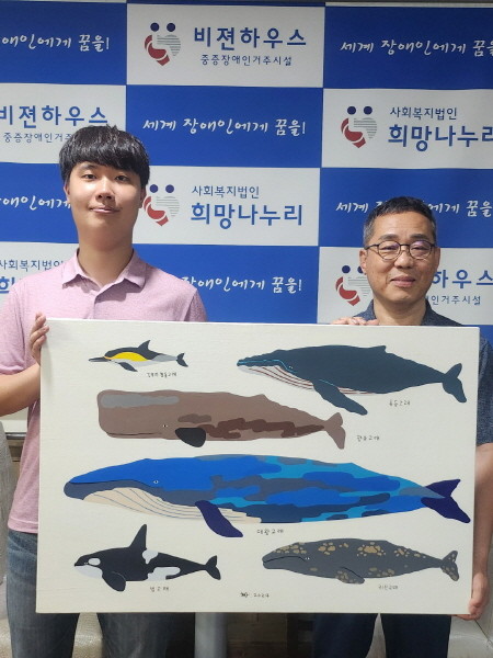 ‘우리 바다 우리 고래’ 작품은 우리 바다에 살고 있거나 혹은 사라진 고래들을 망라해 그린 그림으로, 전시의 기획 의도가 가장 잘 반영된 작품이다. 김채성 작가는 “고래 작품을 통해 발달 장애인들의 인지발달과 더불어 학습에 도움을 주고자 해당 작품을 ‘희망나누리’에 기증하기로 했다”라고 밝혔다.