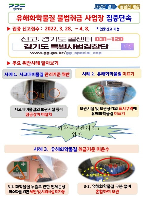 | ▲ 유해화학물질 불법취급 사업장 집중단속 홍보 포스터(사진=경기도) |