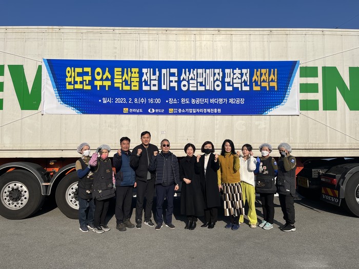 | ▲ 완도군은 오는 3월 미국 동부에서 열릴 특산품 판촉전을 위한 선적식을 가졌다.(사진제공=완도군) |
