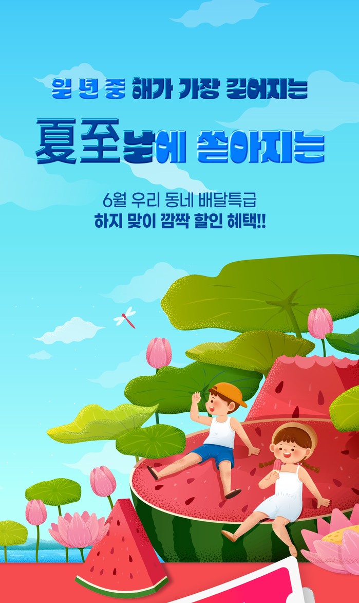 경기도와 경기도주식회사가 공동운영하는 경기도 공공배달앱 배달특급이 일년 중 해가 가장 길다는 하지(夏至)를 맞아 ‘우리동네 배특 깜짝 할인 쿠폰’을 지급하는 소비자 할인 이벤트에 나선다고 16일 밝혔다.