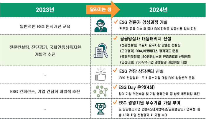 - 도내 중소기업 환경·사회·투명(ESG) 경영 도약을 위해 지속지원 예정