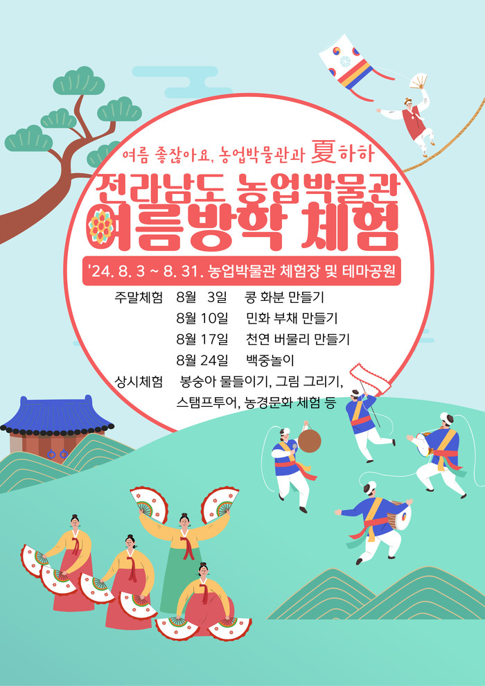 김옥경 농업박물관장은 “여름방학을 맞아 어린이와 도민이 참여할 이색 프로그램을 마련했다”며 “많은 도민이 새롭고 다채로운 체험 프로그램에 참여해 보람되고 기억에 남을만한 추억을 만들길 바란다”고 말했다.