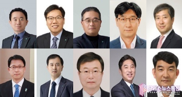 | ▲ 왼쪽 윗줄부터 시계방향, 김영훈 하나금융지주 부사장, 박종무 하나금융지주 부사장, 고영렬 하나금융지주 부사장, 조영순 하나은행 부행장(연금사업단장), 전호진 하나은행 부행장(IB그룹장), 박태순 하나은행 부행장(ICT그룹장 겸 ICT본부장), 이동열 하나은행 부행장(충청영업그룹대표), 이동원 하나은행 부행장(준법감시인), 이은배 하나은행 부행장(중앙영업본부 지역대표), 이재철 하나은행 부행장(신탁사업본부장). 사진=하나금융그룹 |