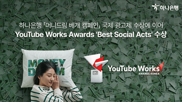 | ▲하나은행 『머니드림』 캠페인, 금융권 최초 2023 유튜브 웍스 어워즈 Best Social Acts 부문 수상(사진=하나은행) |