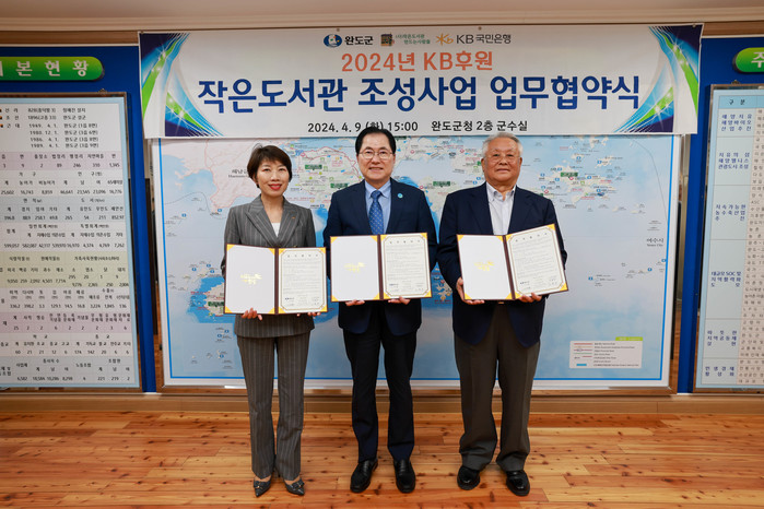 [전남=프레스뉴스] 박정호 기자= 전남 완도군은 지난 9일 KB국민은행, (사)작은도서관만드는사람들과 ‘KB 후원 작은 도서관 조성 사업’에 따른 업무 협약을 체결했다.