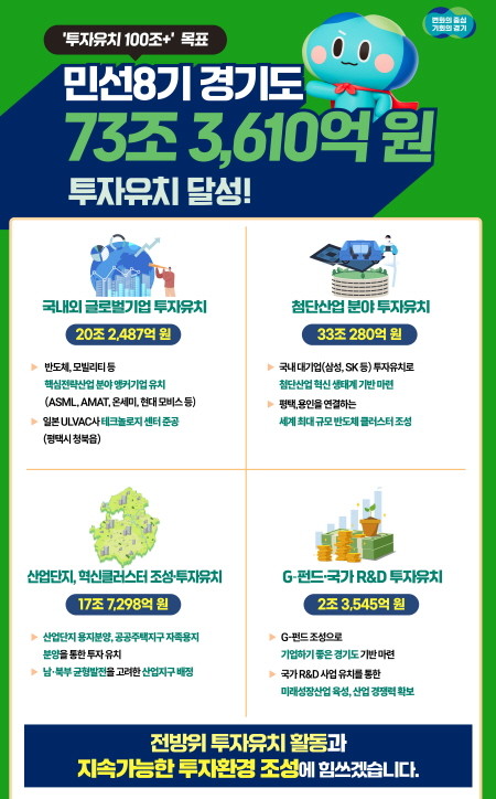 | ▲민선8기 경기도 73조 3,610억 원 투자유치 달성! 그래픽(사진=경기도) |