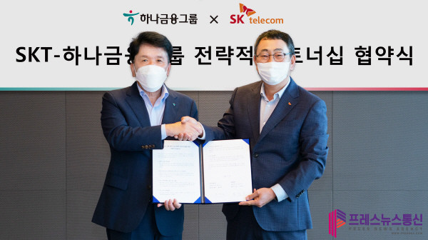 [프레스뉴스] 장현준 기자= 하나금융그룹(회장 함영주, 이하 하나금융)과 SK텔레콤(대표이사 사장 유영상, 이하 SKT)은 지난 22일 금융·ICT 혁신에 기반한 초협력을 바탕으로 우리 사회 구성원들과의 新동반성장을 위한 전략적 파트너십을 체결했다고 밝혔다.