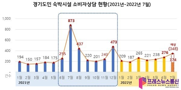 지난해 1372소비자상담센터 접수된 경기도민 숙박시설 관련 소비자 상담은 총 3천559건으로 이 가운데 7월(873건)과 8월(437건)에 전체의 약 37% (1천310건)가 몰려있다.